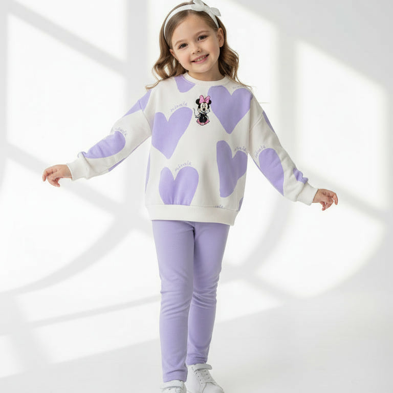 Внесете боја и забава во секојдневието со овој детски комплет со Minnie Mouse во виолетова нијанса.