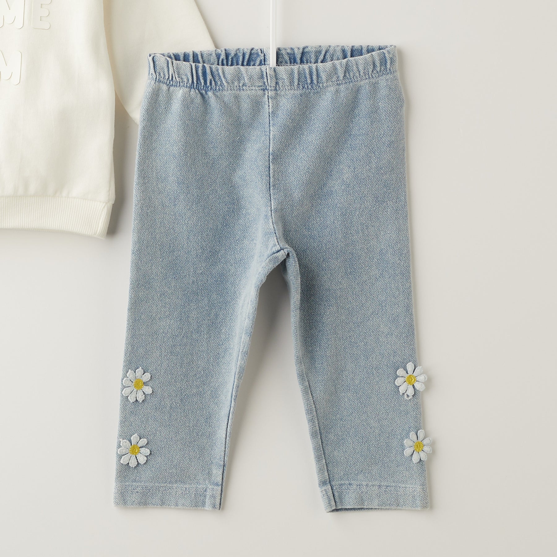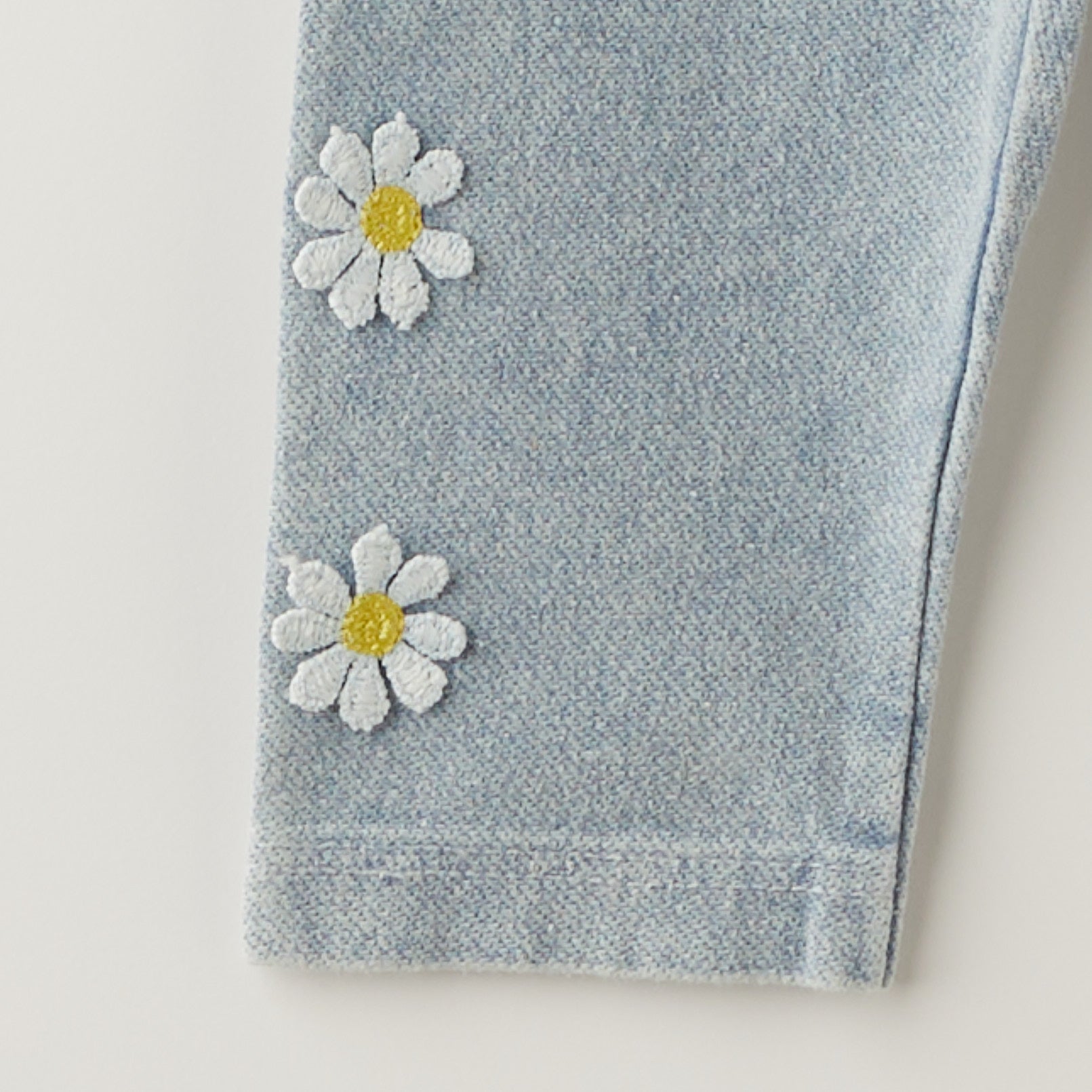 • Декорирани со везени маргаритки на ногавиците за слатка, нежна завршница.