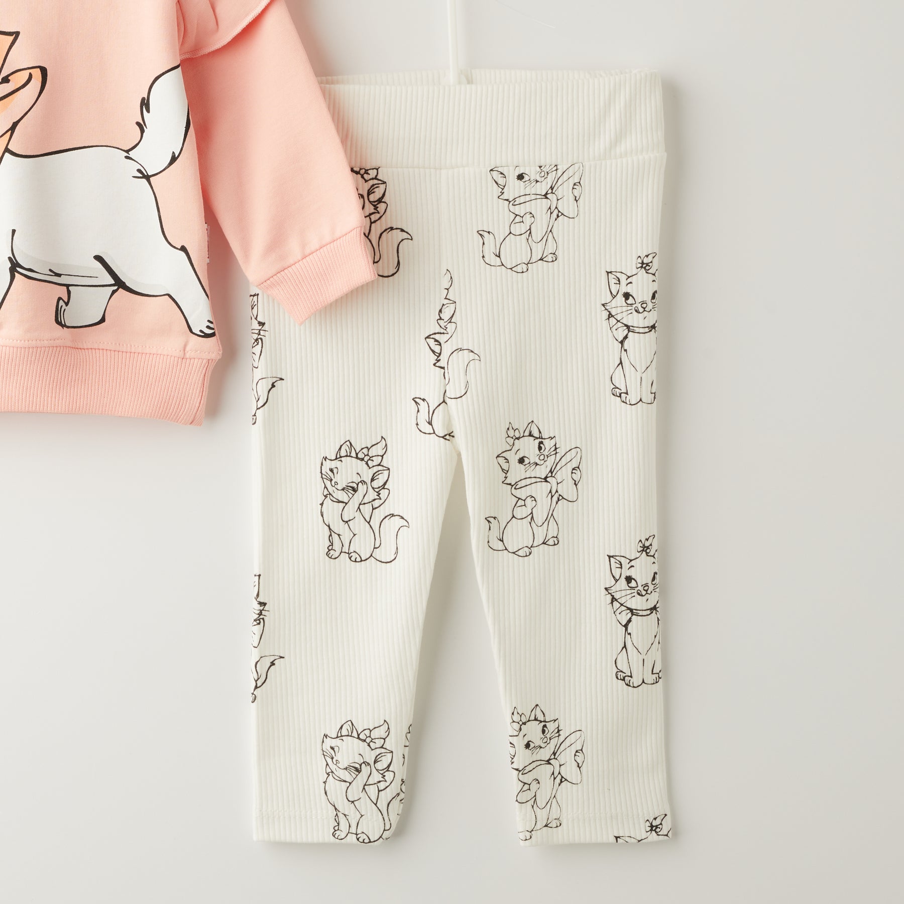 Се состои од блузичка со апликација на мече и срце и еластични хеланки со дискретен принт, идеални за движење и игра.