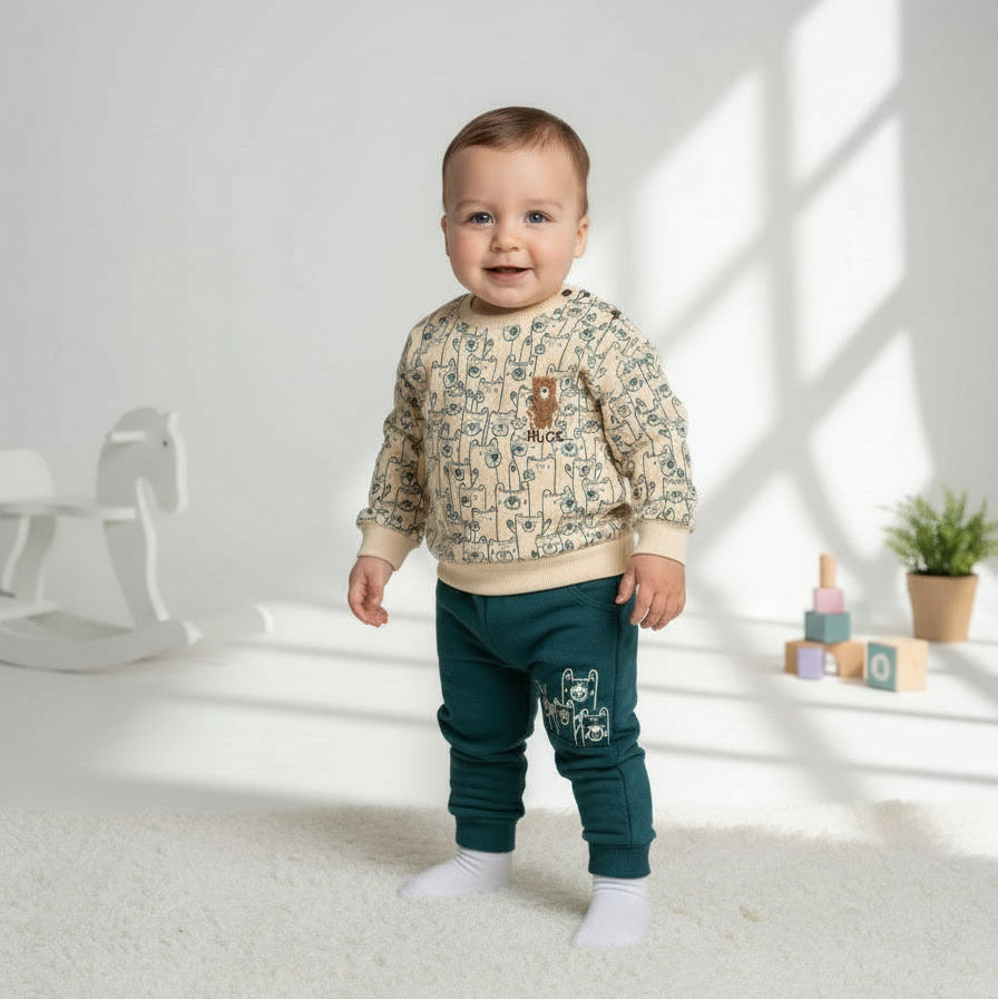 Совршен баланс помеѓу удобност и симпатичен дизајн – овој дводелен комплет е создаден за денови исполнети со насмевки и топлина.