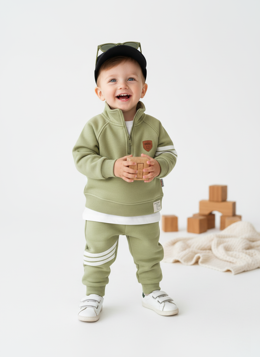 Овој модерен и удобен детски комплет е создаден за мали трендсетери кои сакаат комфор и стил во едно.