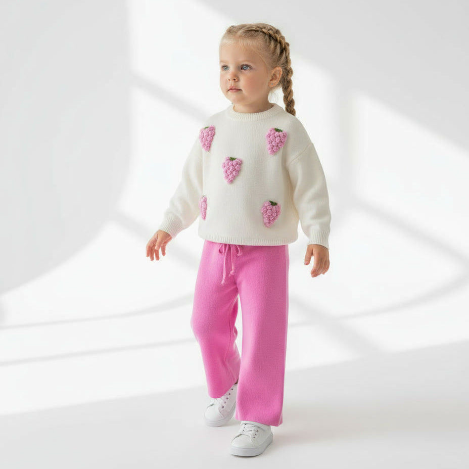 Детски модерен комплет со јагода детали – совршен спој на удобност и уникатен изглед.