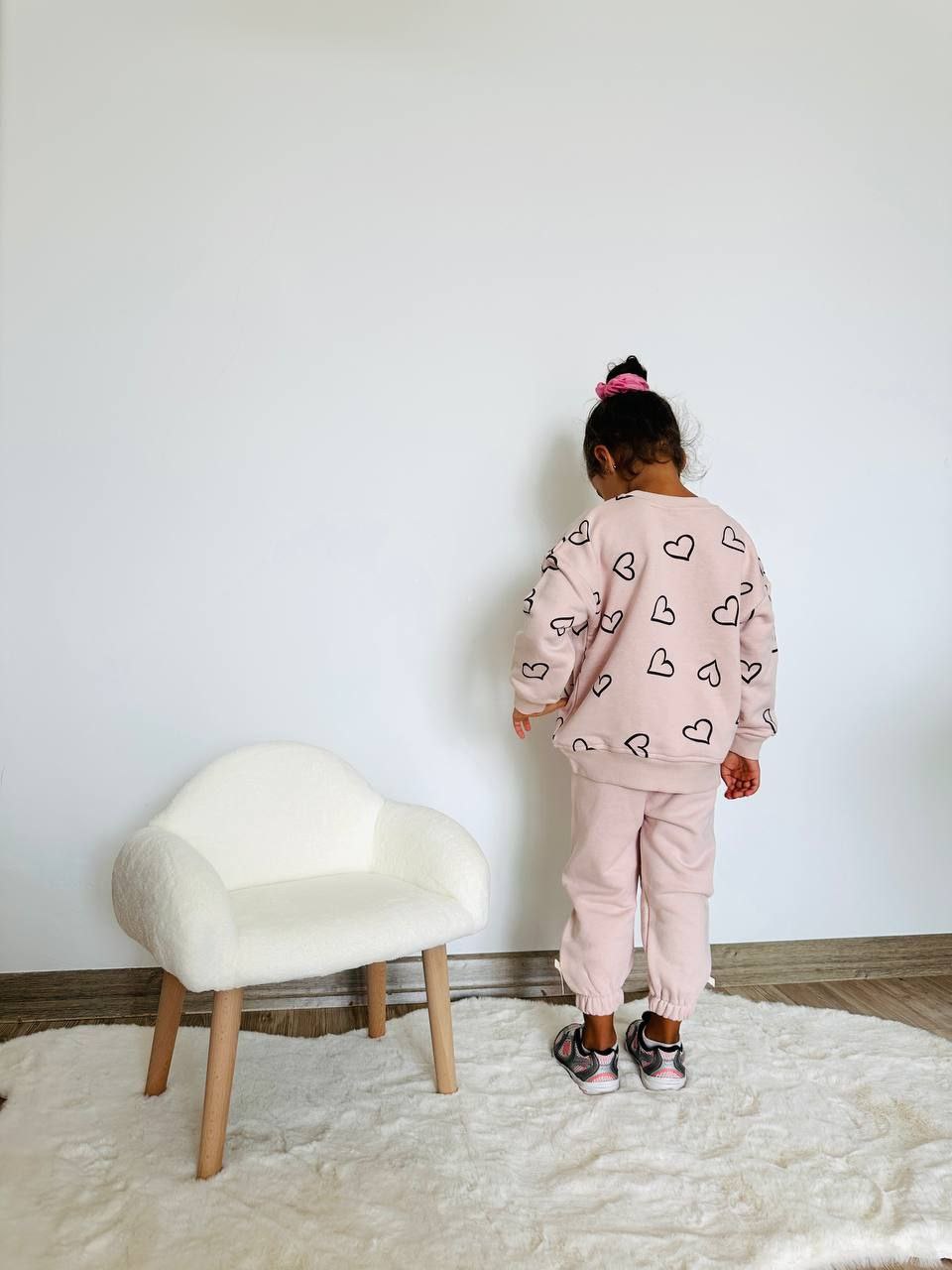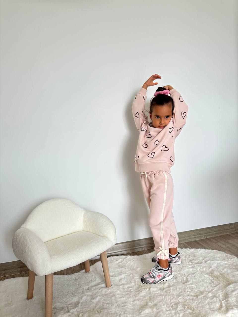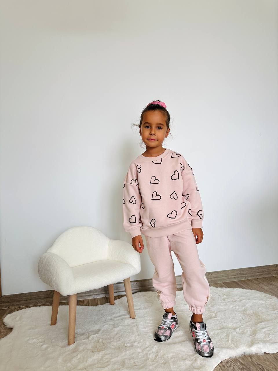 Нежен и тренди детски комплет со срциња – совршен избор за стил и удобност во секојдневието.