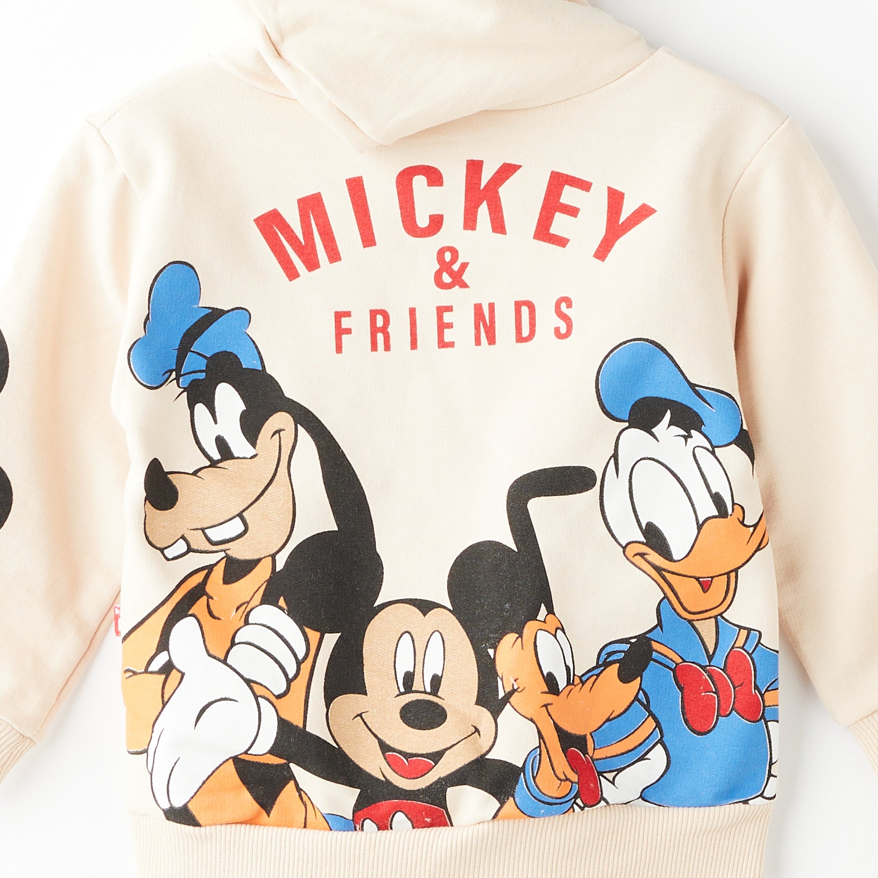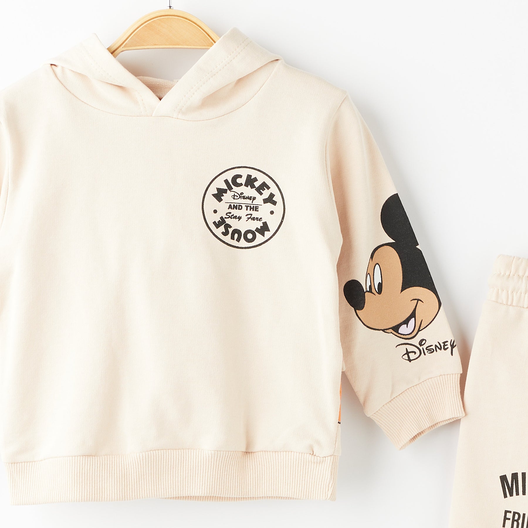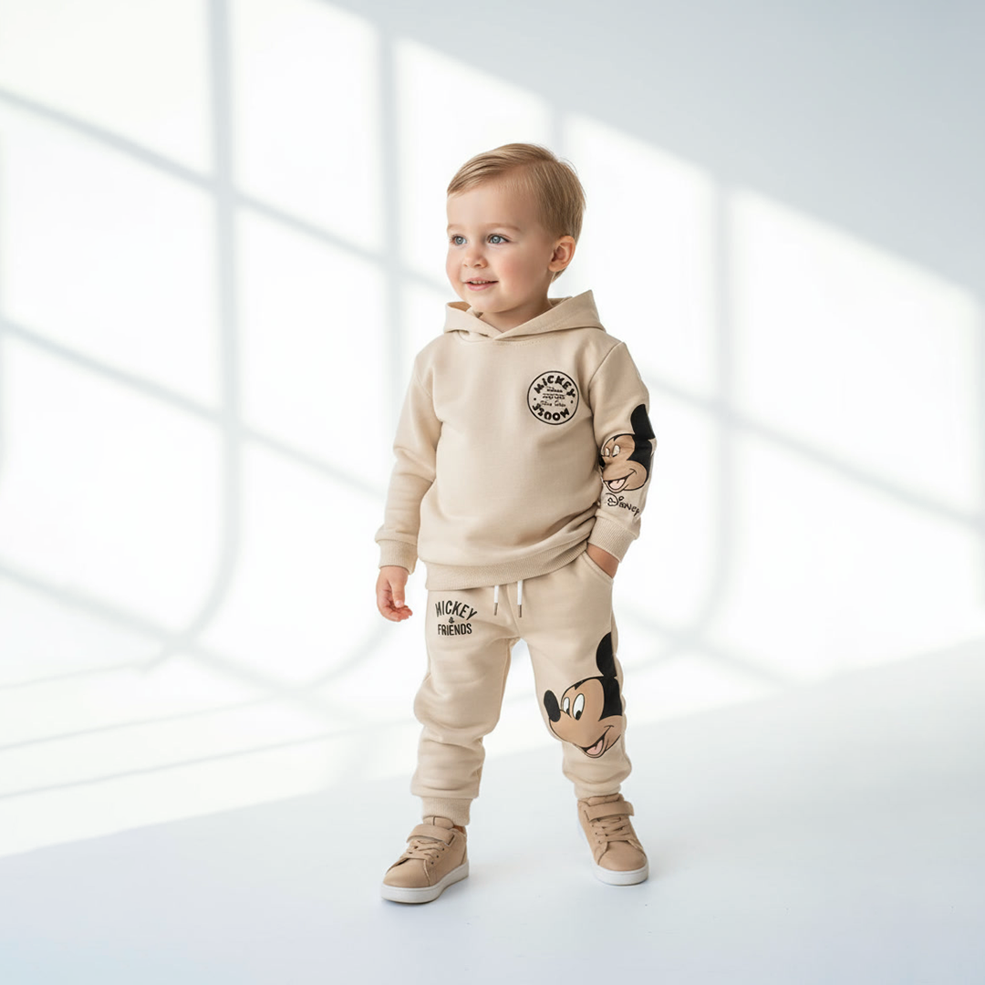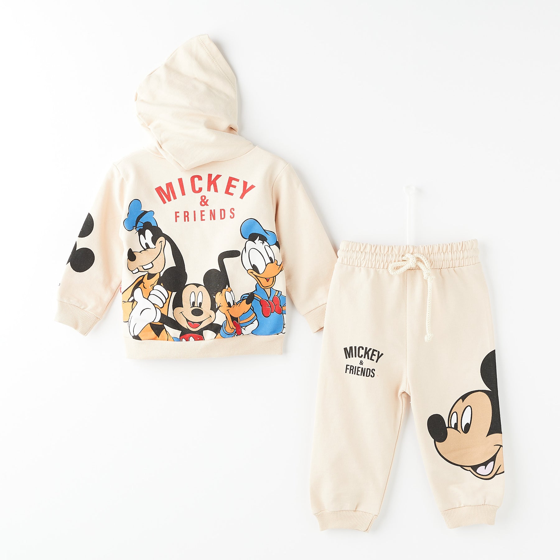 Се состои од блуза со капа и тренерки, украсени со принт на Мики Маус и неговите пријатели.