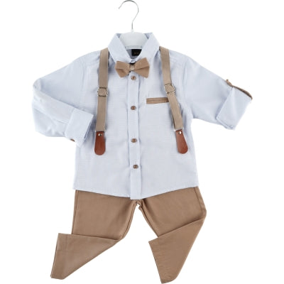 Класика со модерен шмек – овој комплет е идеален избор за свечени пригоди, родендени или семејни прослави. Совршен баланс меѓу стил и удобност, направен да го истакне шармот на секое момче.
