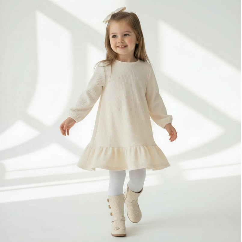 Материјалот е пријатен на допир и погоден за чувствителна детска кожа, а крем нијансата му дава чист, елегантен изглед погоден за секоја пригода.