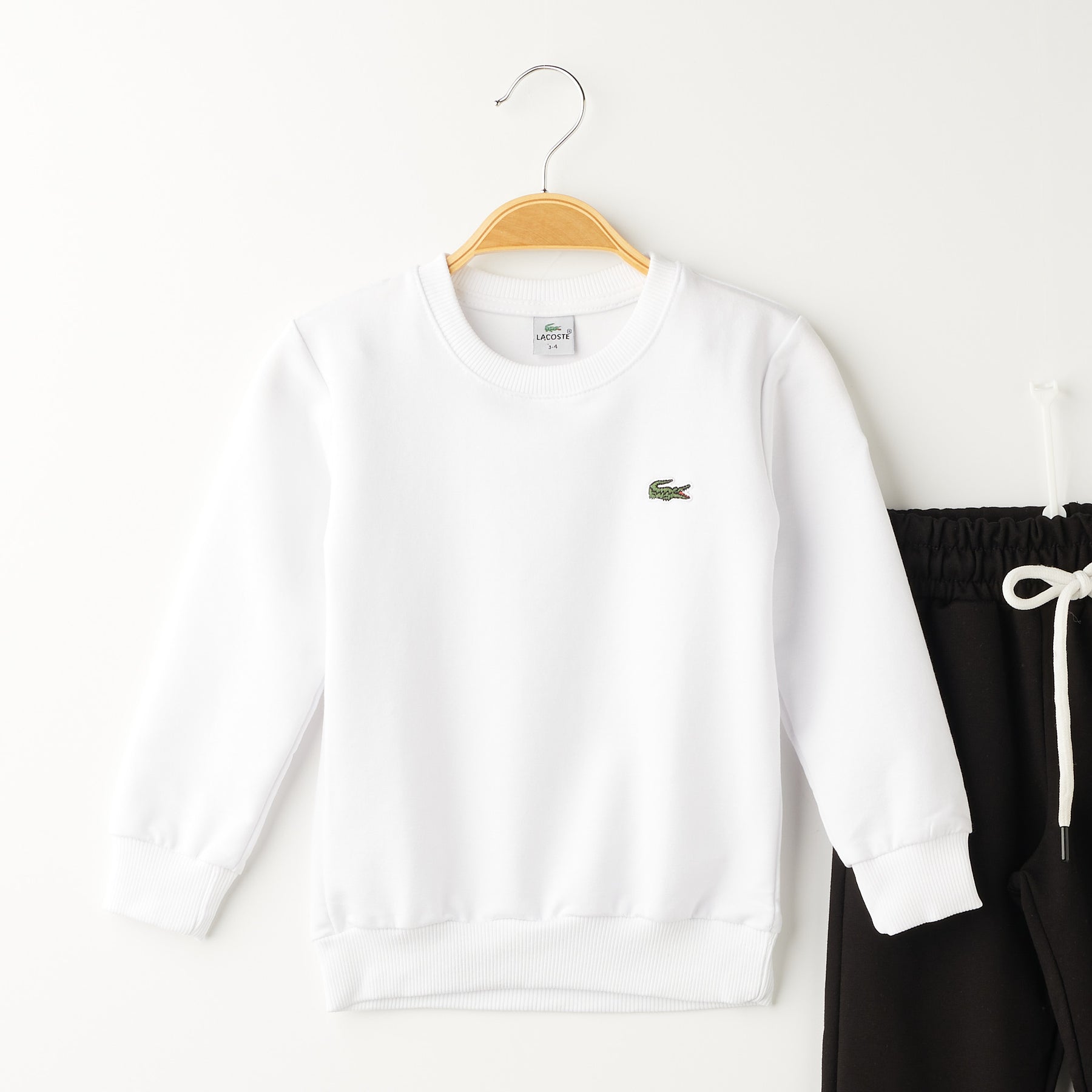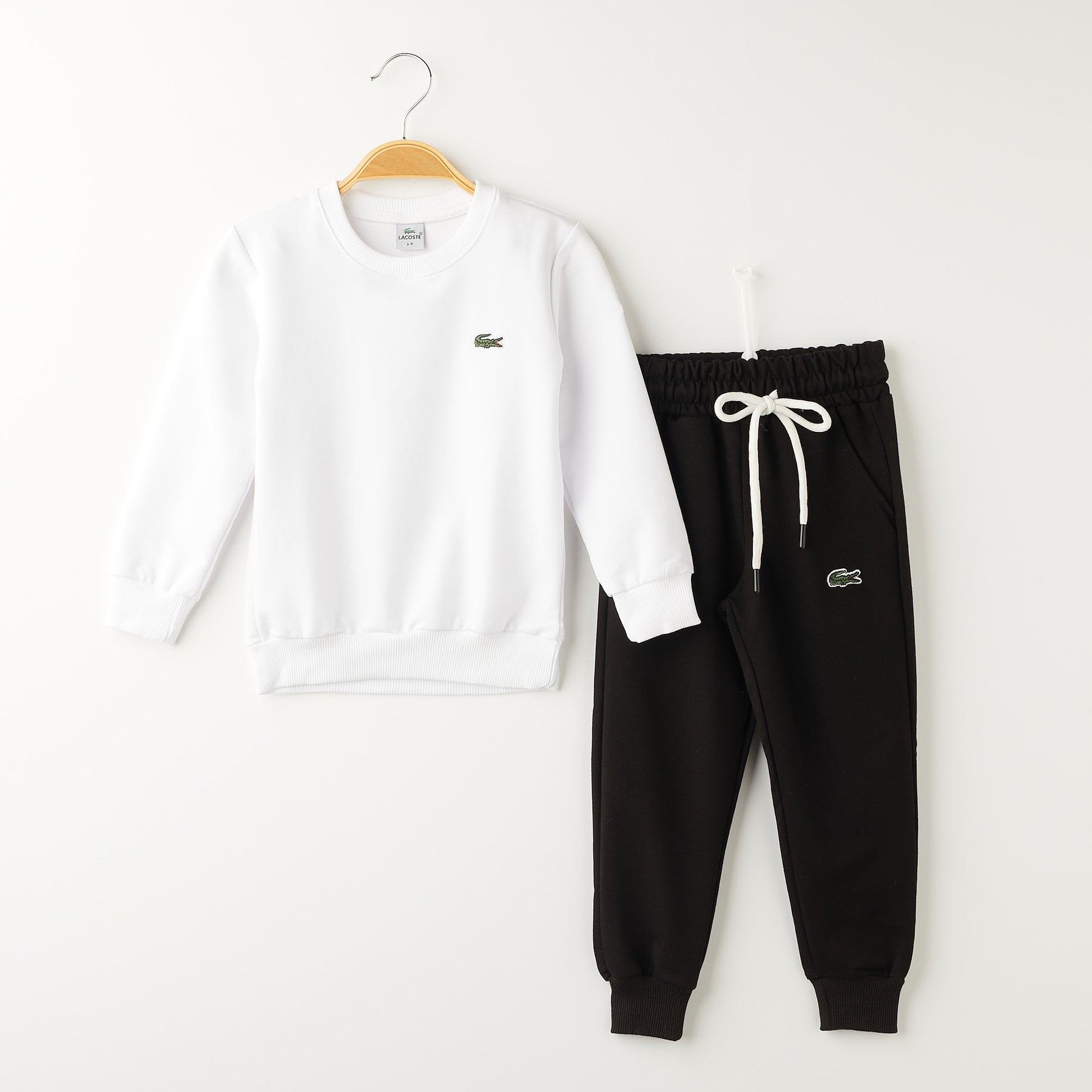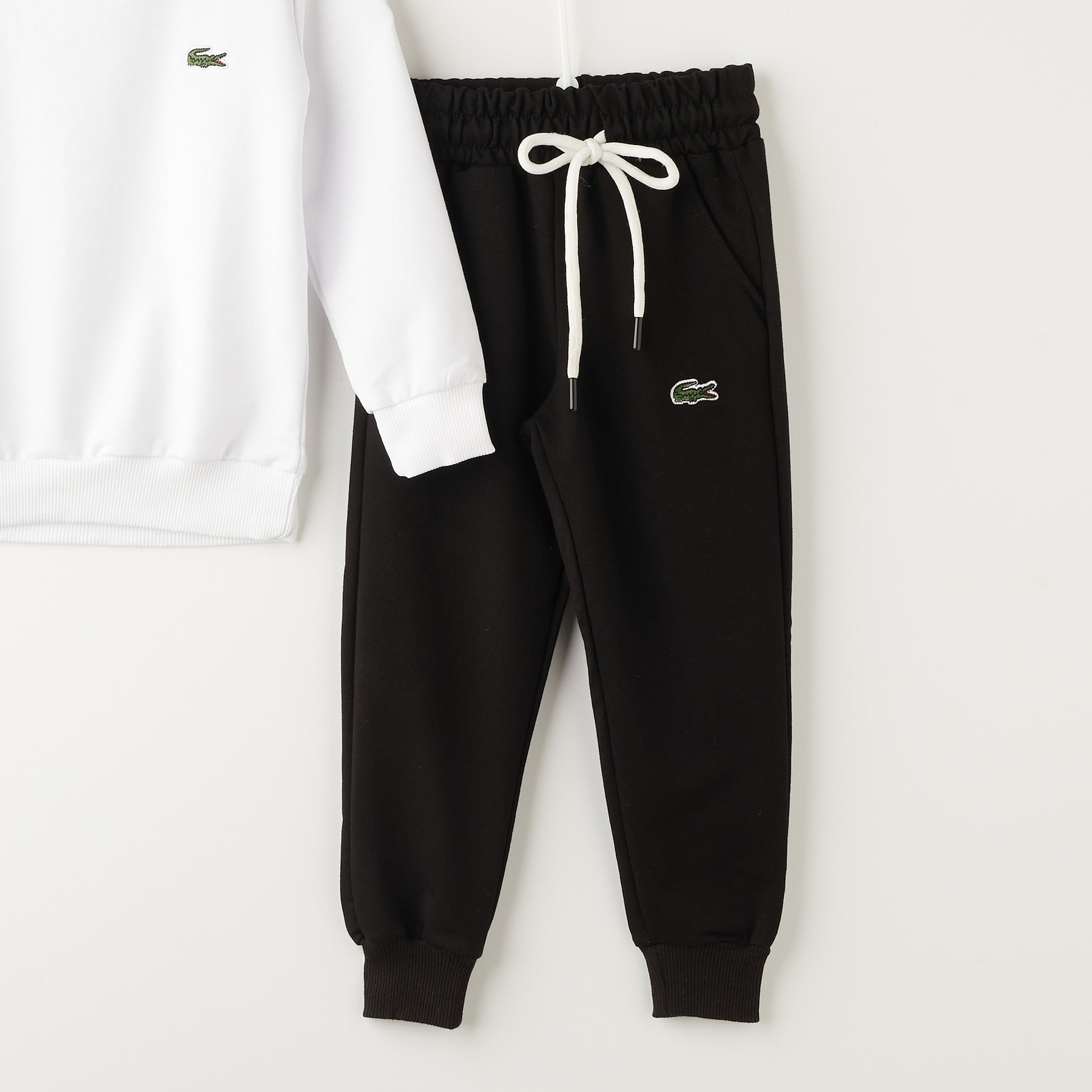 Елегантен и удобен детски комплет со дуксер и тренерки, совршен за секојдневие, училиште и прошетки. Достапен во две комбинации – целосно црн или бел дуксер со црни панталони.