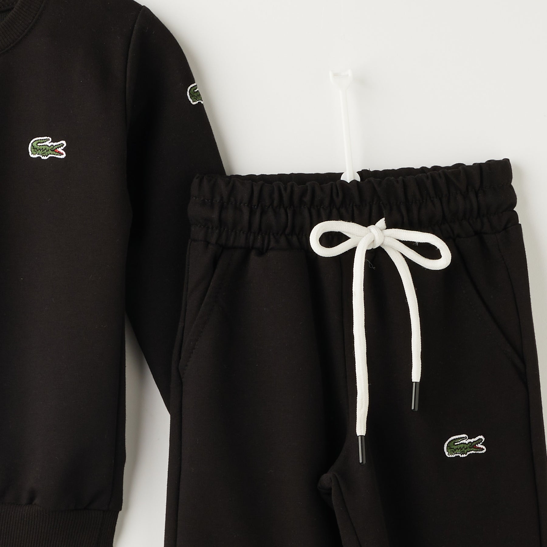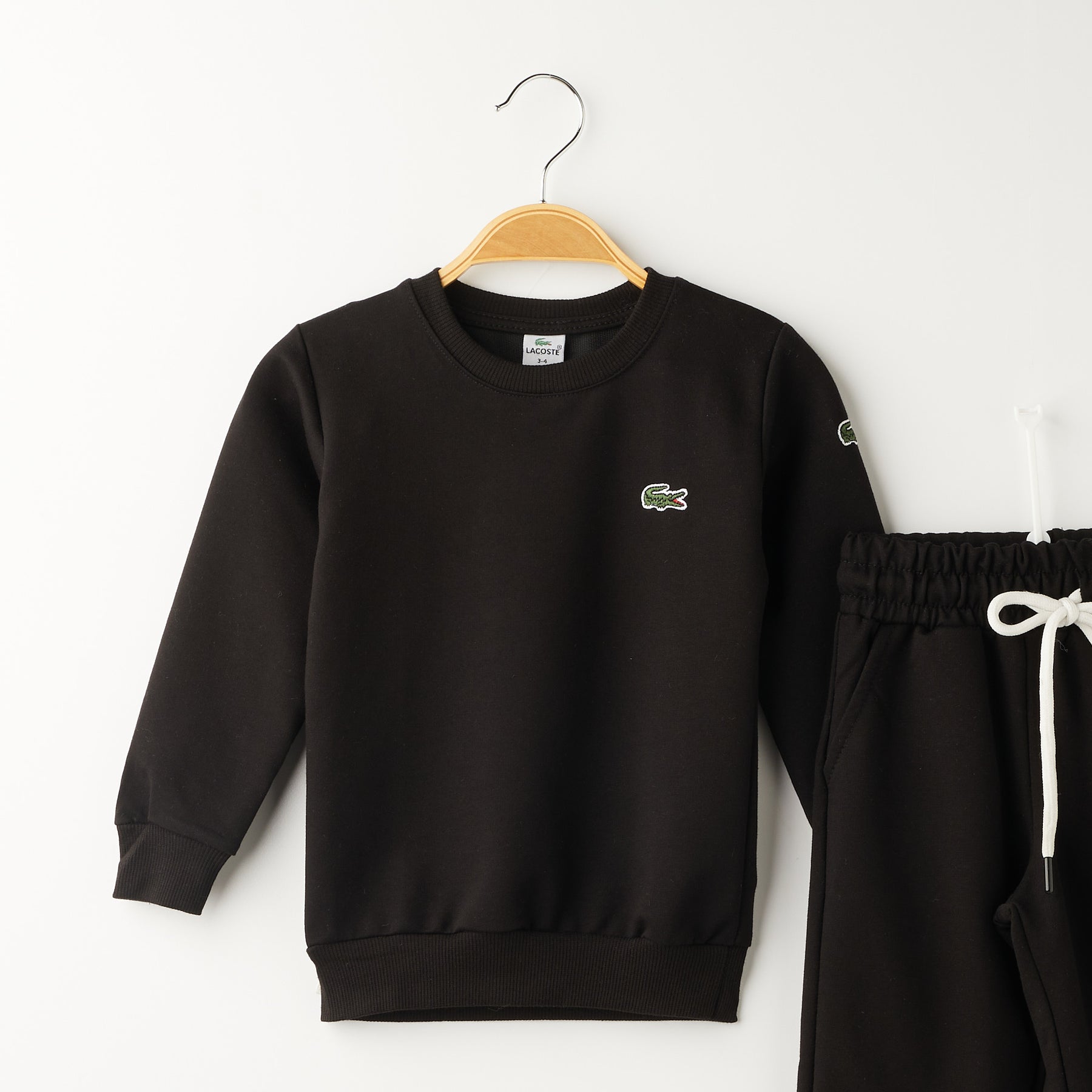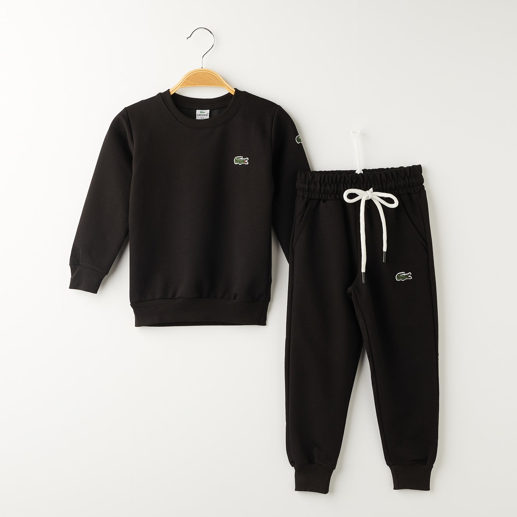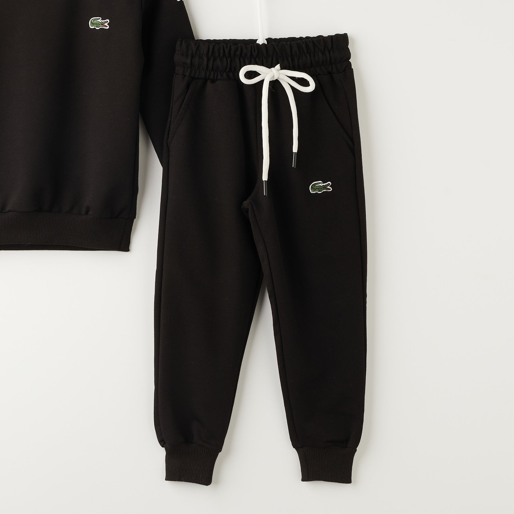 Елегантен и удобен детски комплет со дуксер и тренерки, совршен за секојдневие, училиште и прошетки. Достапен во две комбинации – целосно црн или бел дуксер со црни панталони.