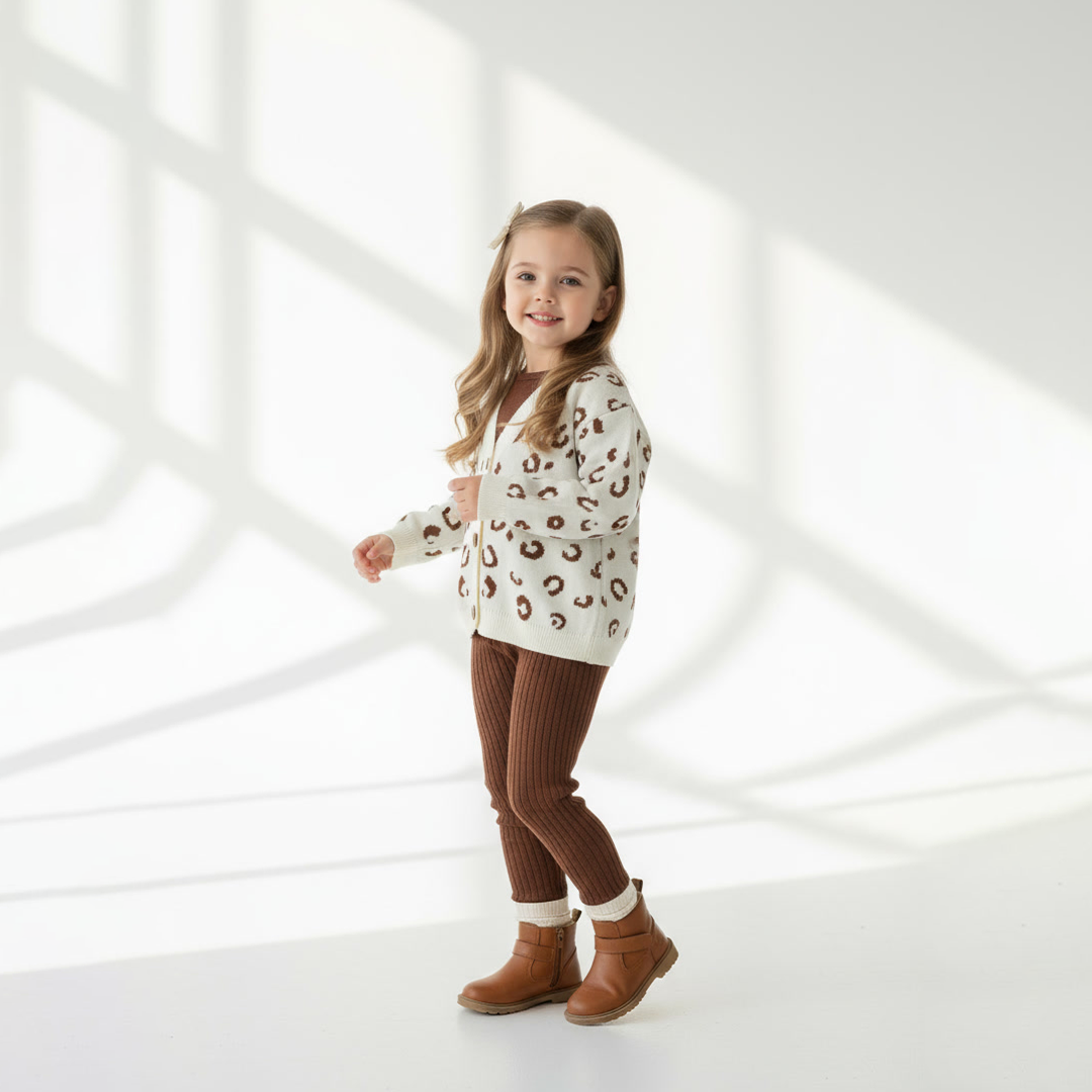 Модерен и удобен детски комплет со џемпер и хеланки – совршен избор за есен и зима.
