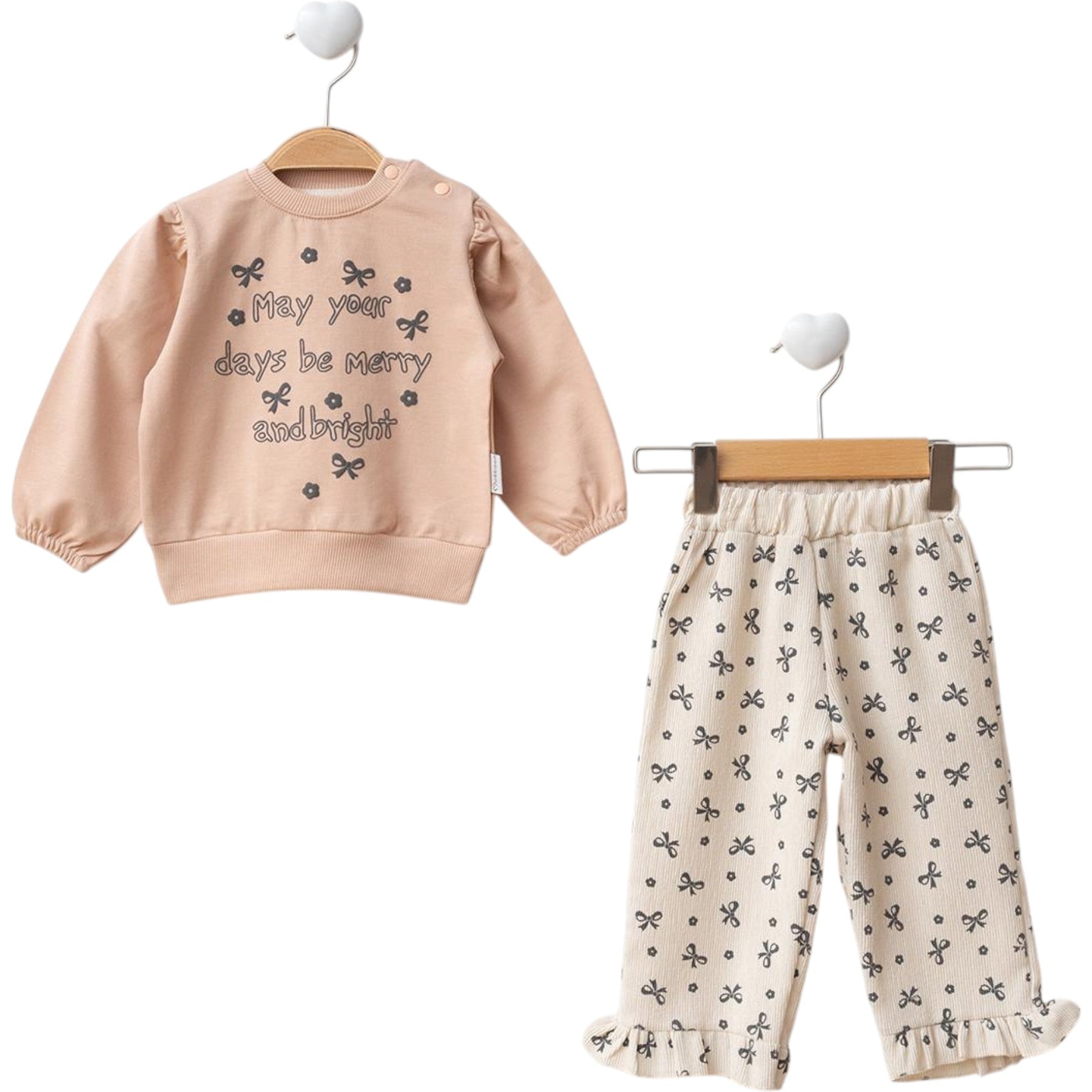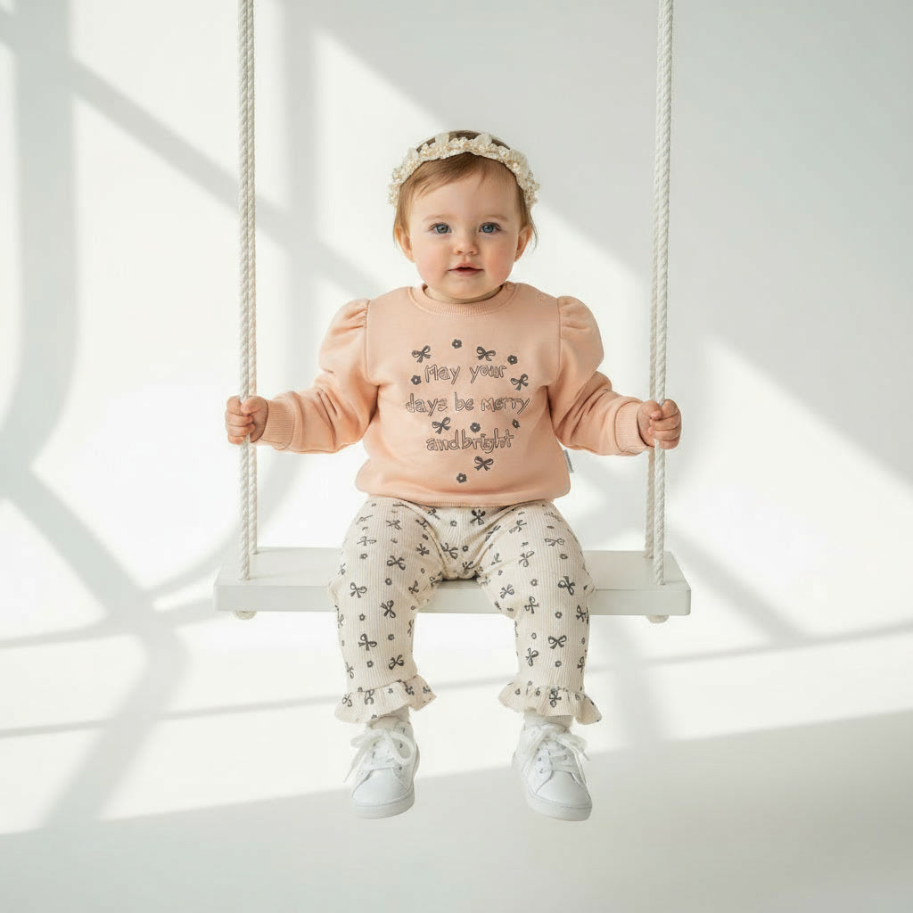 Нежен, топол и стилски — овој дводелен комплет е совршен избор за малите дами кои сакаат удобност со допир на елеганција. Изработен од висококвалитетен памук, комплетот нуди мекост, топлина и слобода на движење во текот на целиот ден.
