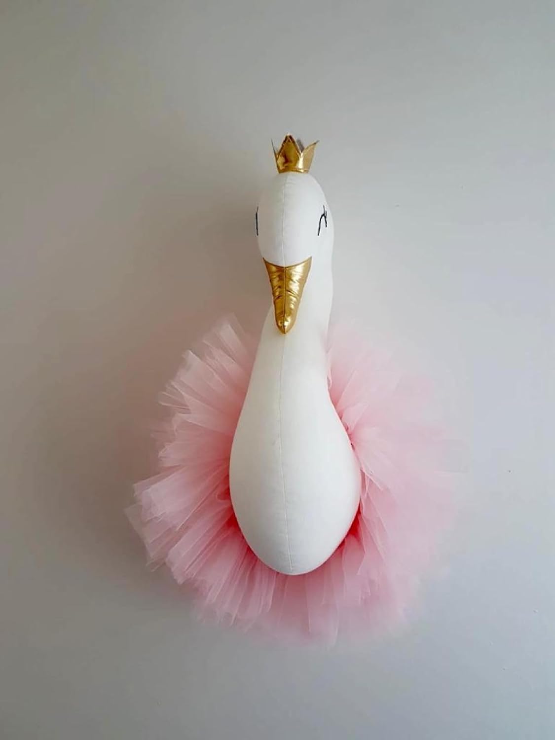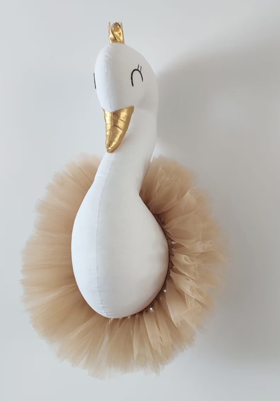 Декоративен ѕиден елемент дизајниран како визуелен акцент за детски и бебешки простории, со јасен фокус на естетика, мекост и елегантен дизајнерски впечаток. Формата на лебед во комбинација со тул создава „statement“ парче што ја надградува просторијата без визуелно оптоварување.