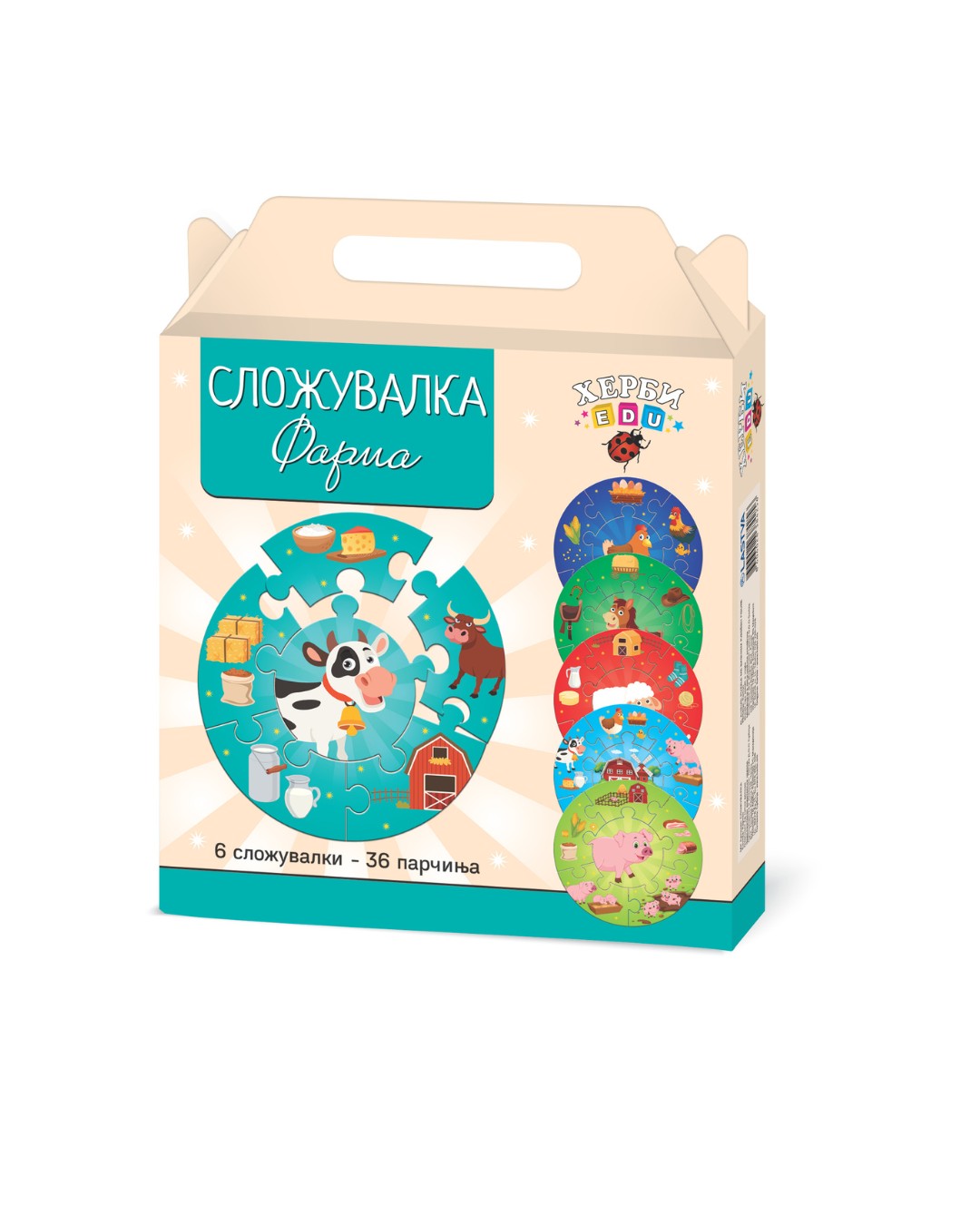Со 6 различни кружни слики и 36 парчиња, децата откриваат како изгледа животот на фармата .