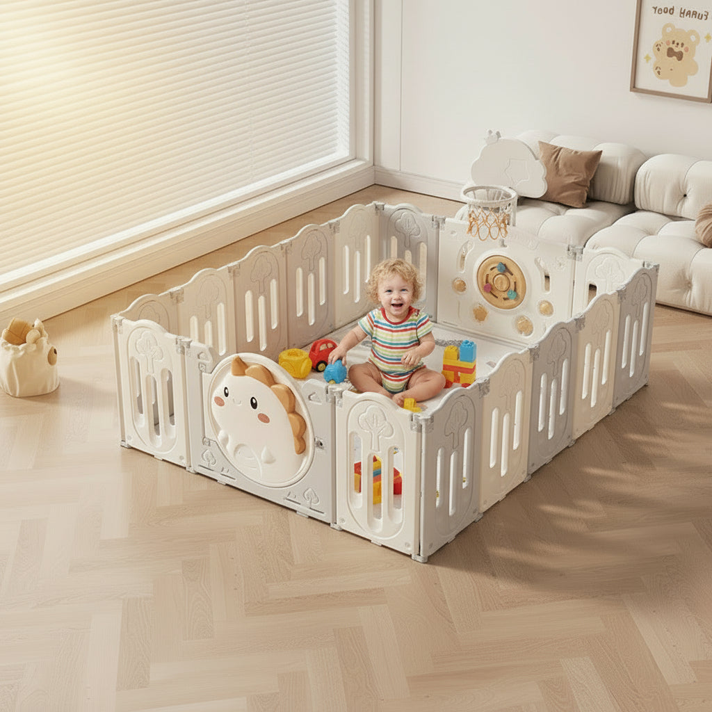 Овој модуларен детски playpen е дизајниран како комплетно контролирана и безбедна средина за секојдневна игра, движење и развој. Производот е позициониран како решение „all-in-one“ за родители кои сакаат јасна контролна зона без компромис со просторот и естетиката.