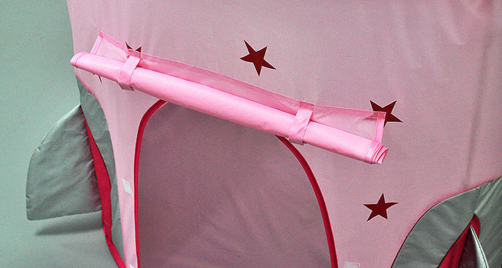 Изработен од лесен, но стабилен материјал, сетот е брз за монтажа и демонтажа, што го прави практичен за секојдневна употреба и складирање. Мрежестите страни овозможуваат добра циркулација на воздух и визуелна контрола. Розовиот дизајн со ѕвезди е прилагоден за детски соби и play-простори со чист и пријатен визуелен идентитет.