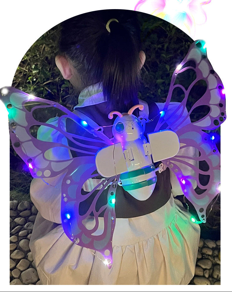 Светлечките пеперутка-крилја за деца се дизајнирани да создадат магичен визуелен ефект преку LED светлосни ленти, комбинирани со лесна конструкција и прилагодлив систем за носење. Крилјата се изработени од флексибилен материјал со прецизен принт и нежна колор-палета, со што се постигнува балансиран, привлечен изглед без агресивни бои.