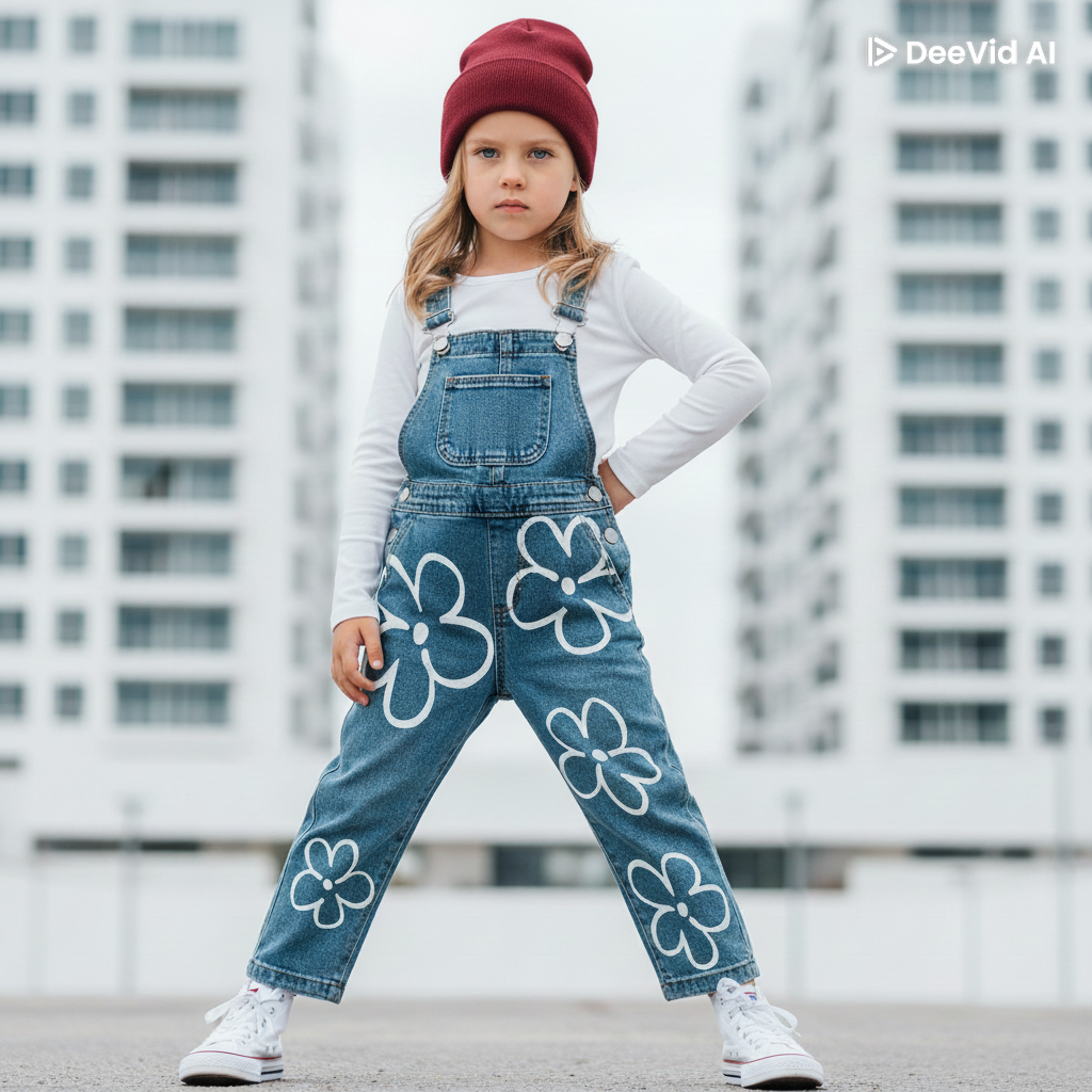 Овај фармерски комбинезон е вистински моден избор за мали девојчиња што сакаат удобност и стил во едно.