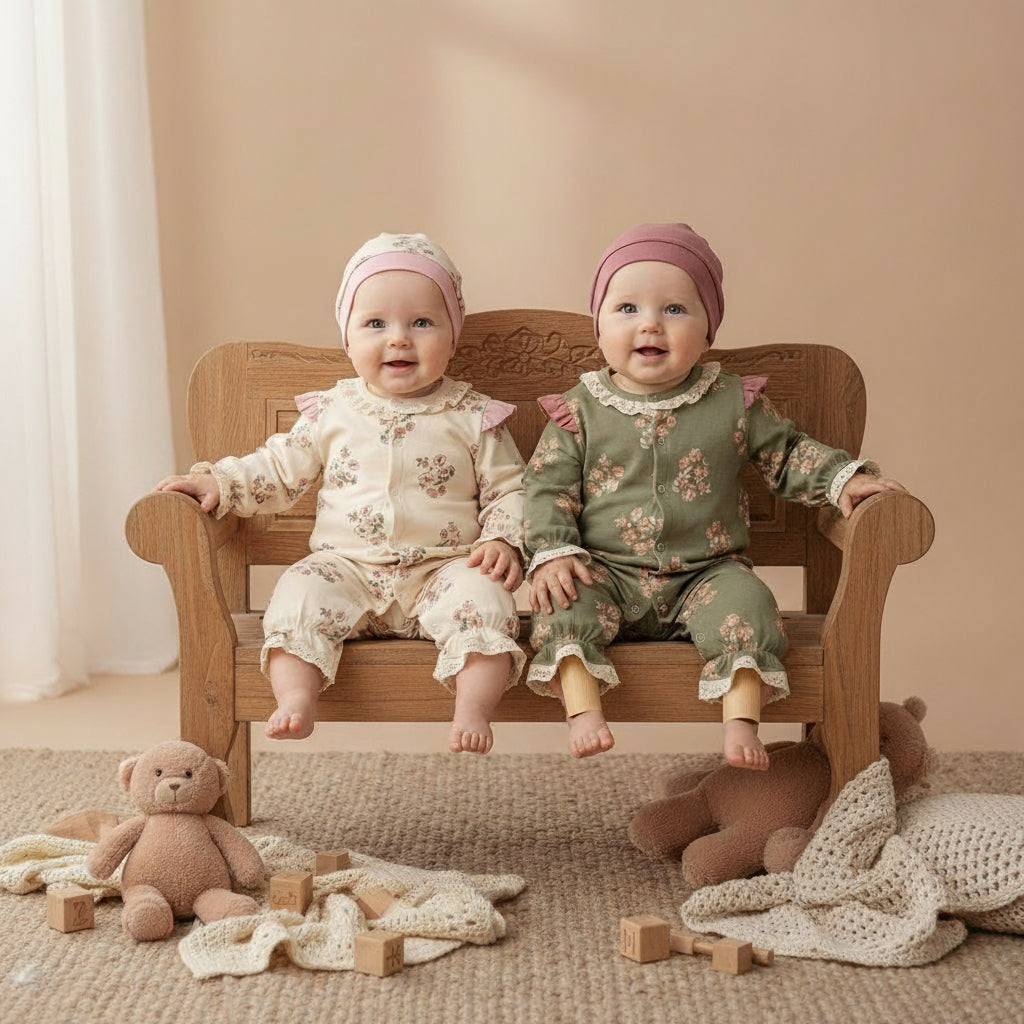 Овие нежни бебешки шпикозни се совршен избор за удобност и стил во секоја пригода. Изработени од мек, пријатен памук што овозможува целодневна удобност и слобода на движење. Шпикозните се со прекрасен цветен дезен во винтиџ стил, украсен со воланчиња на ракавите и краевите и чипкана јака за дополнителна елеганција.