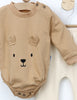 Боди блуза со принт од меченце и мали 3D ушиња за дополнителен шарм.