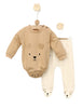 Мек, удобен и неодоливо сладок – овој бебешки комплет е совршен избор за секојдневна удобност и стил. Изработен од 100% памук, материјалот овозможува природна циркулација на воздухот и нежност на допир, идеален за чувствителната бебешка кожа.