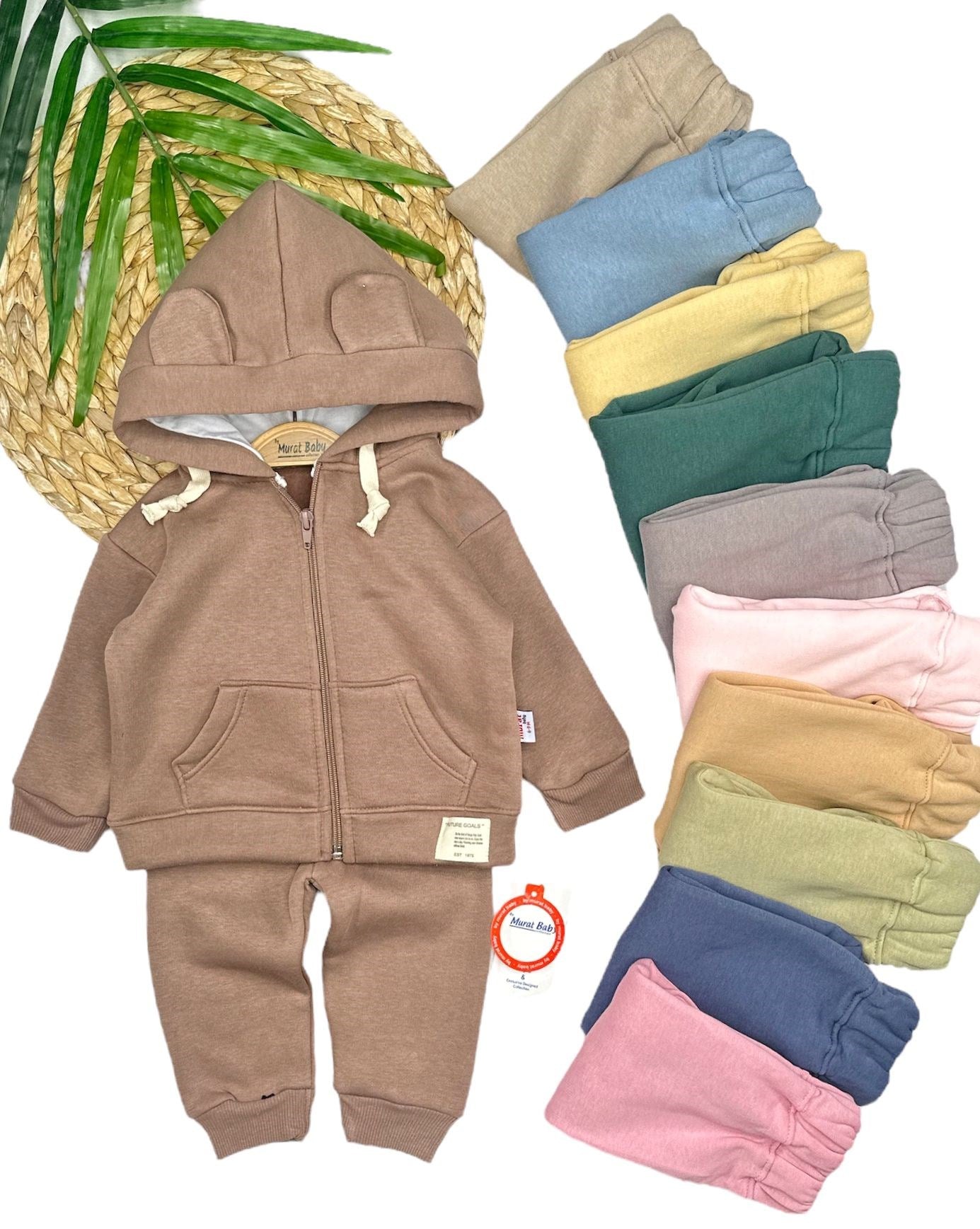 Овој мек бебешки комплет со капа и уши е совршен спој на топлина, удобност и модерен изглед.