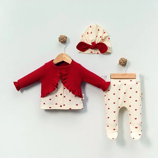 Овој прекрасен 3-делен бебешки сет е совршен избор за секојдневие со стил. Изработен од мек памук, тој нуди топлина, удобност и елегантен изглед за Вашето бебе.