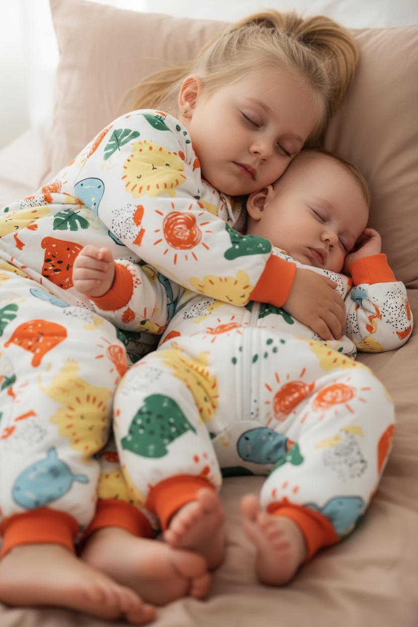 Изработена од висококвалитетен памук, со внатрешна постава што ја задржува топлината, оваа вреќа му овозможува на детето да спие слободно без да се открие.