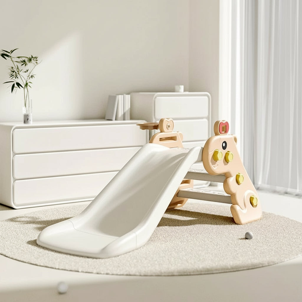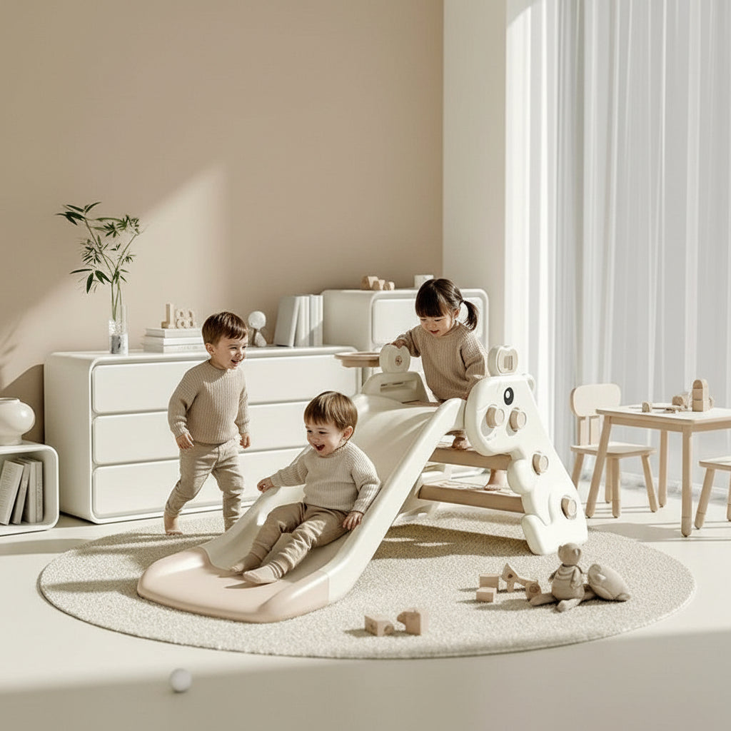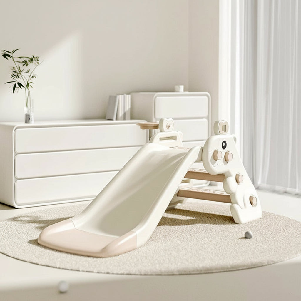 Оваа детска лизгалка со интегрирани скали е дизајнирана како компактно indoor play решение, наменето за секојдневна физичка активност, моторен развој и безбедна игра во домашни услови. Производот е јасно позициониран со фокус на стабилност, ергономија и минималистички дизајн.