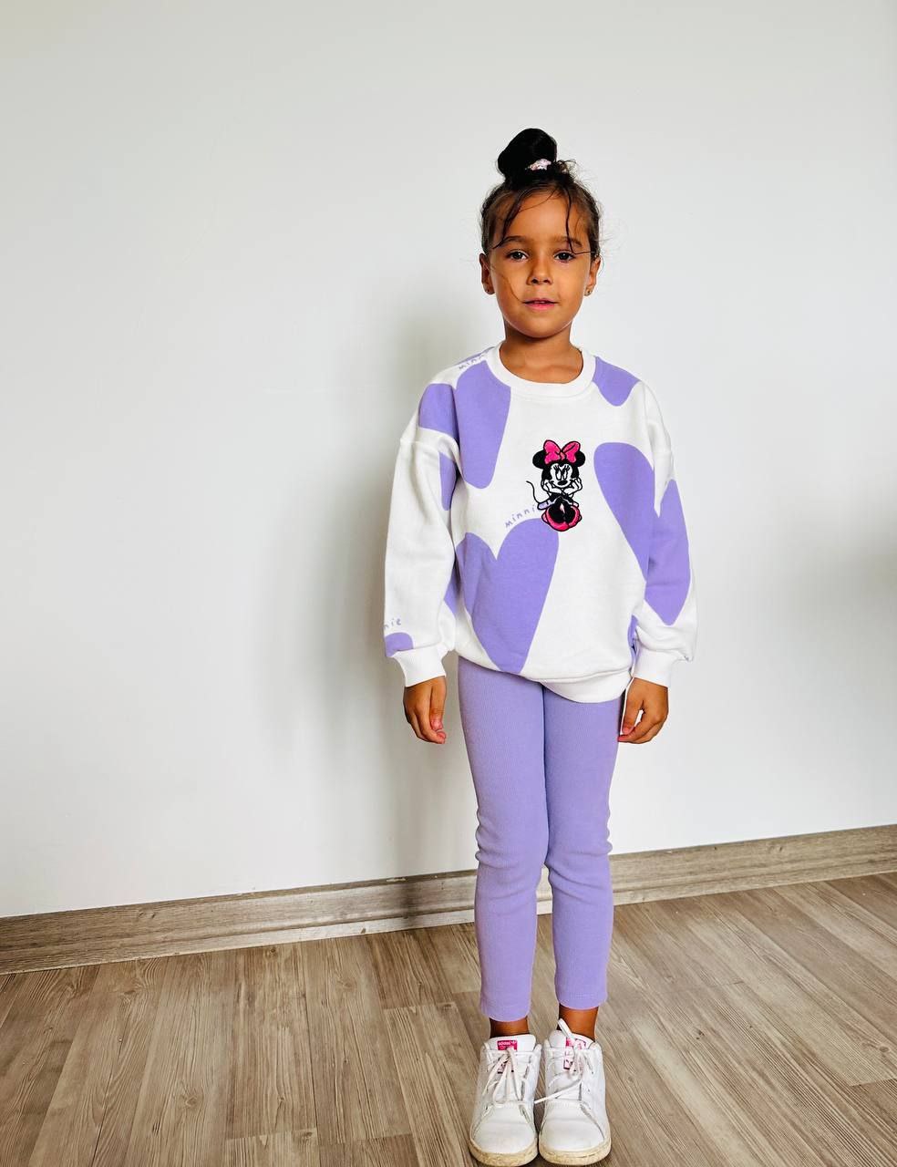 Внесете боја и забава во секојдневието со овој детски комплет со Minnie Mouse во виолетова нијанса.