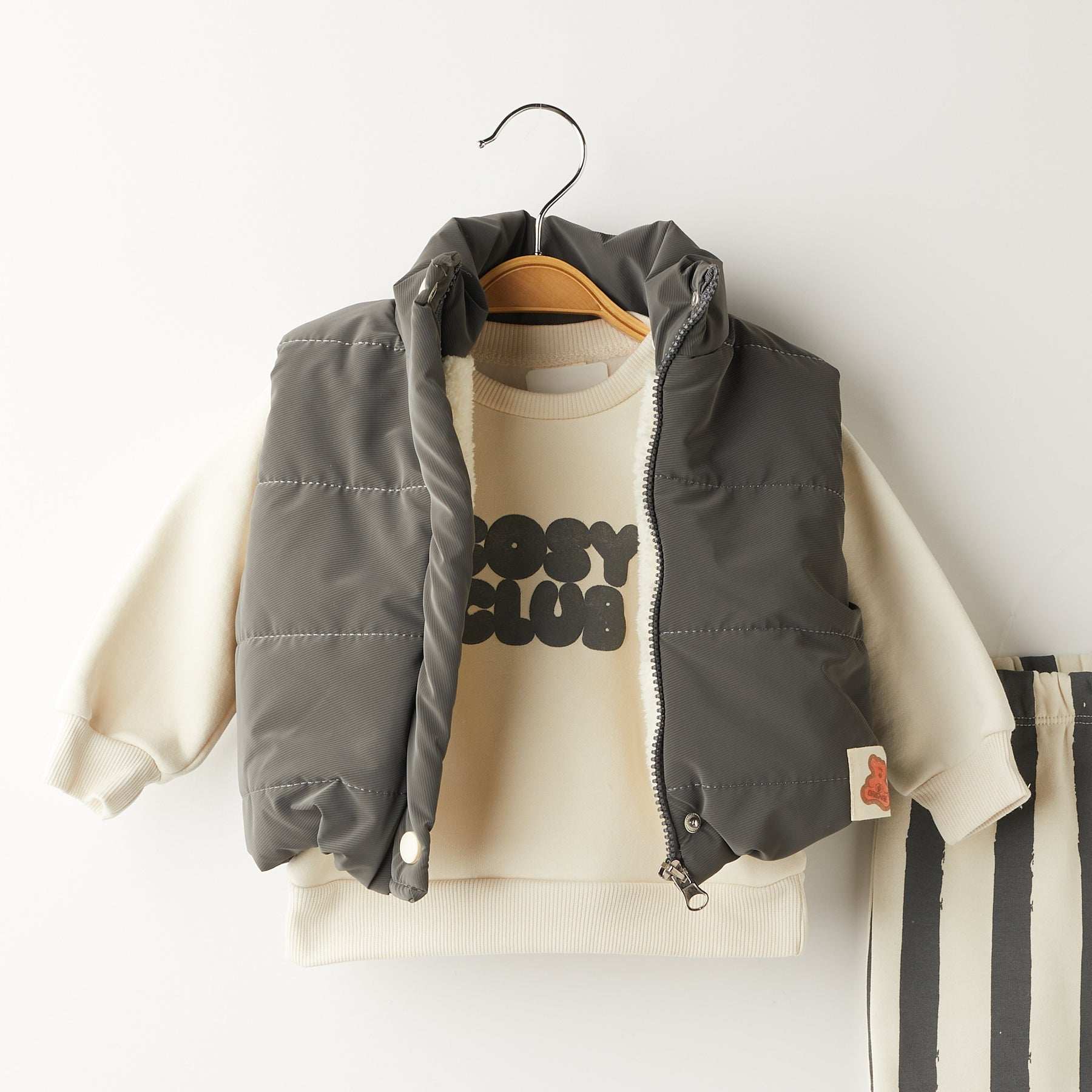 • Елек поставен и удобен, со копчиња и патент за практично облекување.