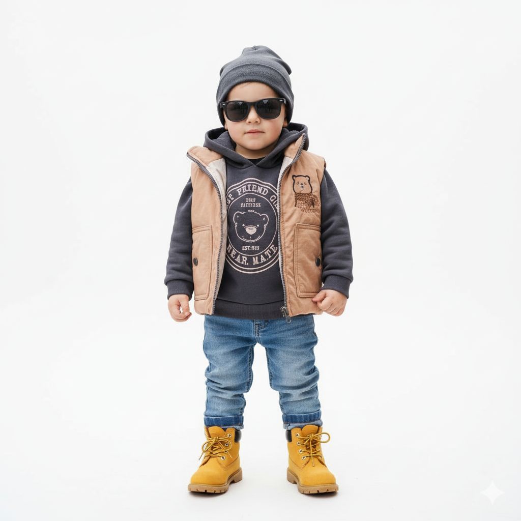 Модерен, удобен и совршен за секојдневни активности – овој комплет е идеален избор за стилски изглед во студените денови. Комбинацијата на практичност и урбан дизајн го прави совршен за прошетки, родендени или фотографирање.
