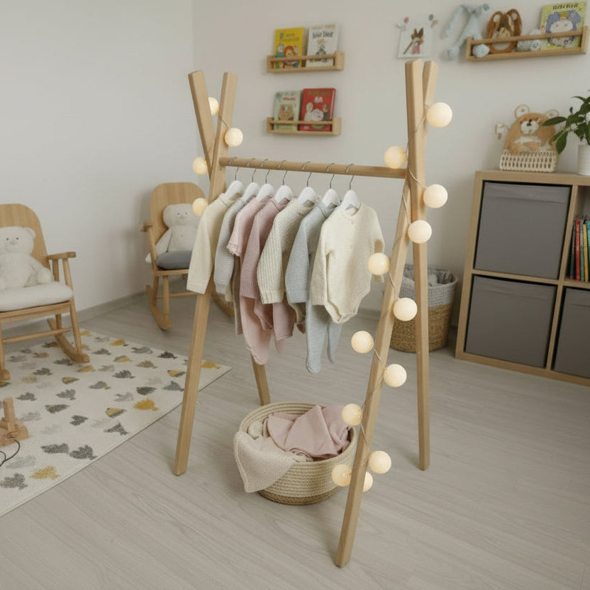Органската дрвена закачалка од 100% цврсто дрво од бор и смрека специјално произведени за алиштата на вашите малечки.